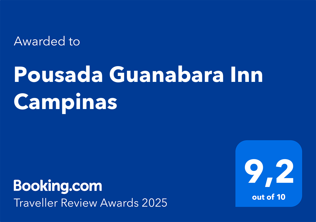 Fomos premiados pelo Booking Travellers Review Awards 2025 com nota 9,2 em avalição de nossos hóspedes
